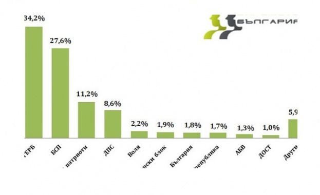 На въпрос "Ако изборите за български парламент бяха днес, за коя политическа партия бихте гласували?", анкетираните, които са заявили, че ще гласуват, дават следните отговори: за ГЕРБ биха гласували 34,2%, за БСП гласуват 27,6%, за Обединени патриоти са 11,2% и за ДПС съответно 8,6%.