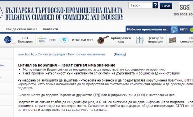 От вчера на сайта на БТПП има раздел за подаване на сигнали за корупция.
