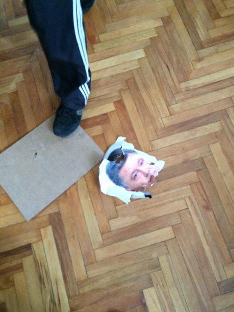 След „силовото нахлуване", разкъсвайки милицейския кордон в административната сграда, крещейки „Милицията е с бандитите!" и „Порошенко е хуйло!" няколко души се качили на четвърти етаж, преобърнали бюрата на областните депутати, след което свалили портрета на украинския президент Петро Порошенко и с виковете „Това не е нашият президент!" и „Не сме гласували за него", скъсали портрета.