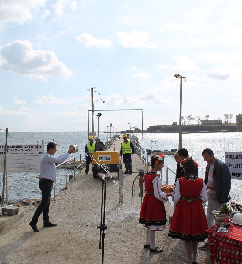 /КРОСС/ Кметовете на Царево и Ахтопол Георги Лапчев и Атанас Желязков направиха първа копка на цялостен ремонт на пристанищния мостик в Ахтопол.