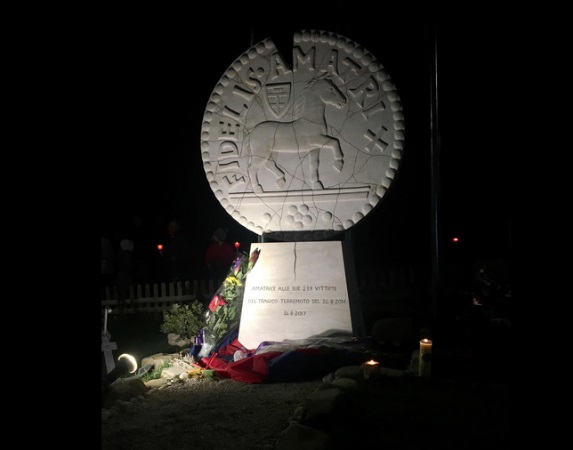 Кметът на Аматриче Серджо Пироци откри паметник на жертвите, представляващ старинна местна монета, наречена "Фиделис Аматрикс".