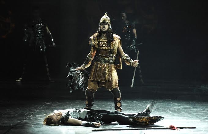 Ефектната сценография, музика и костюмите на героите от древногръцката митология „Илиада" , подсилват въздействието на постановката за епоса на Троянската война.