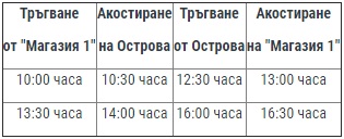 Кораб "Анастасия" ще извършва по два курса на ден при следния график: