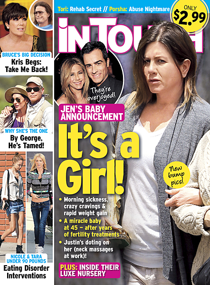 /КРОСС/ Актрисата Дженифър Анистън е бременна. Това твърди американското списание In Touch, поместило снимка на наедрялата звезда на корицата на последния си брой. Списанието дори претендира, че знае и пола на нероденото бебе. Според таблоида, то ще бъде момиченце.