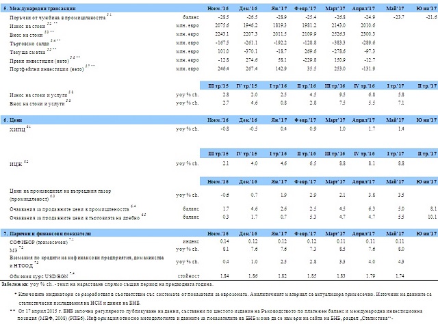 Търговското салдо за април 2017 г. е отрицателно в размер на 289.6 млн. евро при дефицит от 140.2 млн. евро за април 2016 година. За януари - април 2017 г. е отрицателно в размер на 994 млн. евро (2.0% от БВП)3 при дефицит от 495.7 млн. евро (1.0% от БВП)3 за същия период на 2016 година.