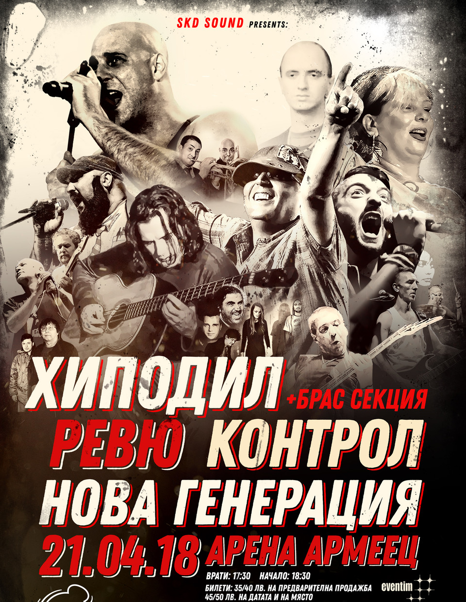 Историческият концерт на ХИПОДИЛ, КОНТРОЛ, РЕВЮ и НОВА ГЕНЕРАЦИЯ на 21 април в зала "Арена Армеец" ще се излъчва директно онлайн поради огромен интерес от феновете в чужбина, а и за тези, които нямат възможност да присъстват в залата. 5-часовото зрелищно шоу на четирите култови банди ще се случи за първи път тази събота и ще премине под мотото "Въпреки всичко!" - въпреки забраните, въпреки омразата, въпреки егото, въпреки разделите, въпреки времето, въпреки състоянието....