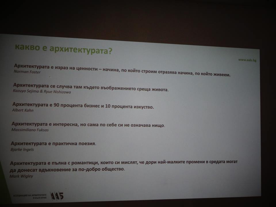 Освен социологическото проучване от Асоциацията на архитектите в България, споделиха и какво е архитектурата и представиха и своите цели и предстоящи инициативи.