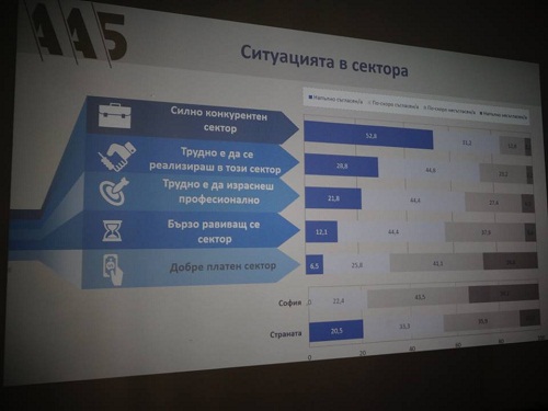 Според 85% от изследваните лица секторът е силно конкурентен, а 2/3 от анкетираните са на мнение, че е трудно да се постигне професионално изследване.