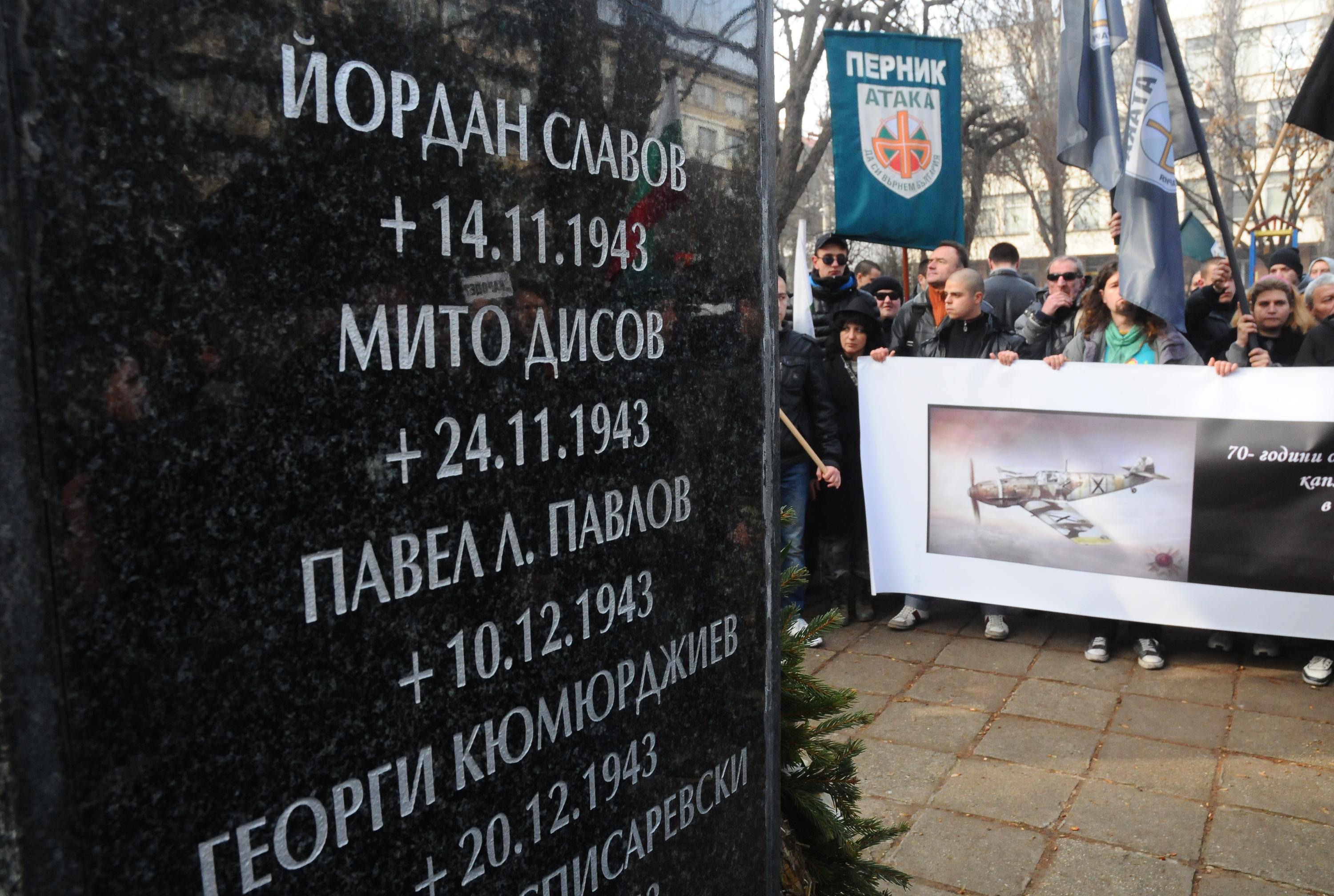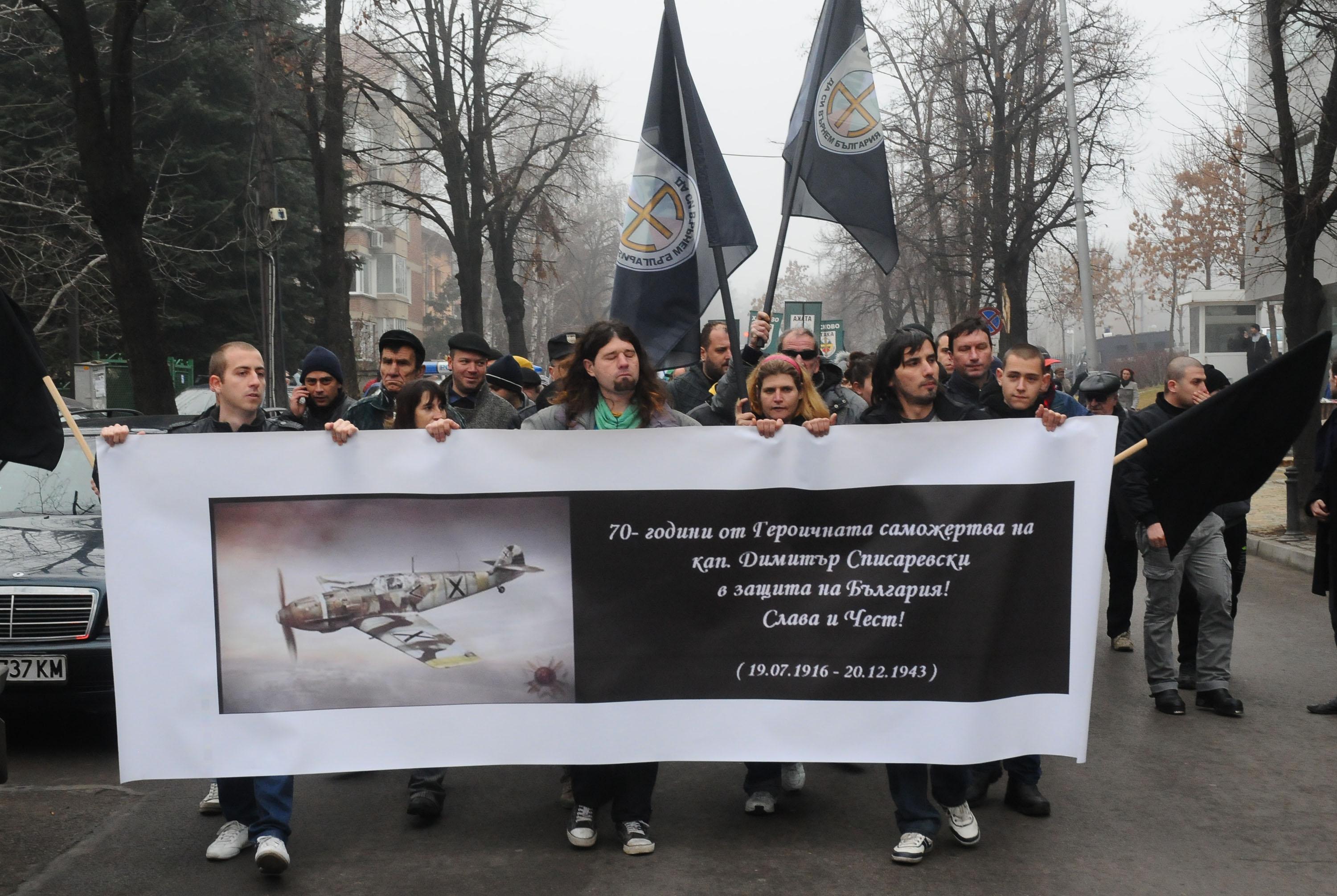/КРОСС/Лидерът на "Атака" Волен Сидеров не присъства на протеста, който партията му организира пред посолството на САЩ в София. Митингът е в памет на жертвите на бомбардировките на София, извършени на 10 януари 1944 година от американската армия.