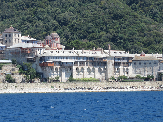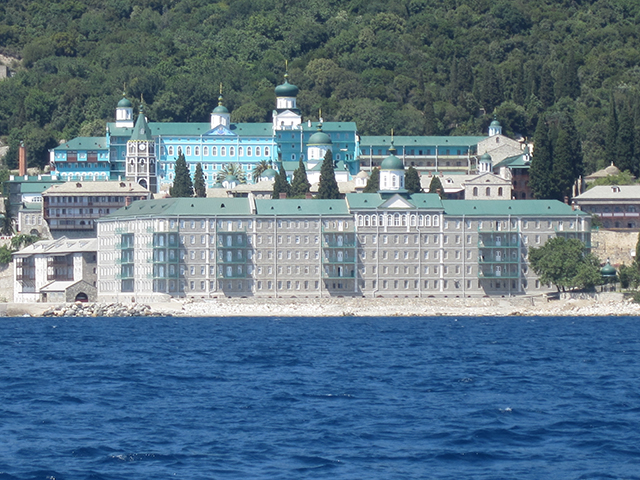 Както е известно, посещението на жени в Света гора е абсолютно забранено. Това става с императорски хрисовул през 1060 година. Дори и животни от женски пол не могат да се внасят в монашеската република, с изключение на кокошки, които снасят яйцата, необходими за Великден и за направата на бои от черупките им, използвани в зографисването на икони. Носят се непотвърдени слухове, че по времето на гръцката гражданска война Атон е бил убежище за много бежанци, между които е имало жени, деца и девойки. И за да не нарушаваме правилника, нашето пътешествие из светите води бе благословено по каноните на православието от висшите църковни служители. Въпреки че поклонението се осъществи на кораб и по вода, жените спазиха строгия дрескод за случая – дълги до земята поли и кърпи на главите. Председателя на Балканското Атонско Сдружение Андрей Кристов разказваше на миряните историята на всеки от манастирите, покрай които минавахме. Великата Лавра е първи в йерархията на атонските манастири. През десетте века на своето съществуване запазва това първенство заради своето благосъстояние и безценните предмети, които съхранява. Разположен е в югоизточния край на полуострова върху стръмна, висока 150 метра скала в подножието на планината Атон. Основан е през 963 г. от монаха Атанасий Атонски, който поставил началото на атонската монашеска общност. В манастира има общо 37 параклиса.