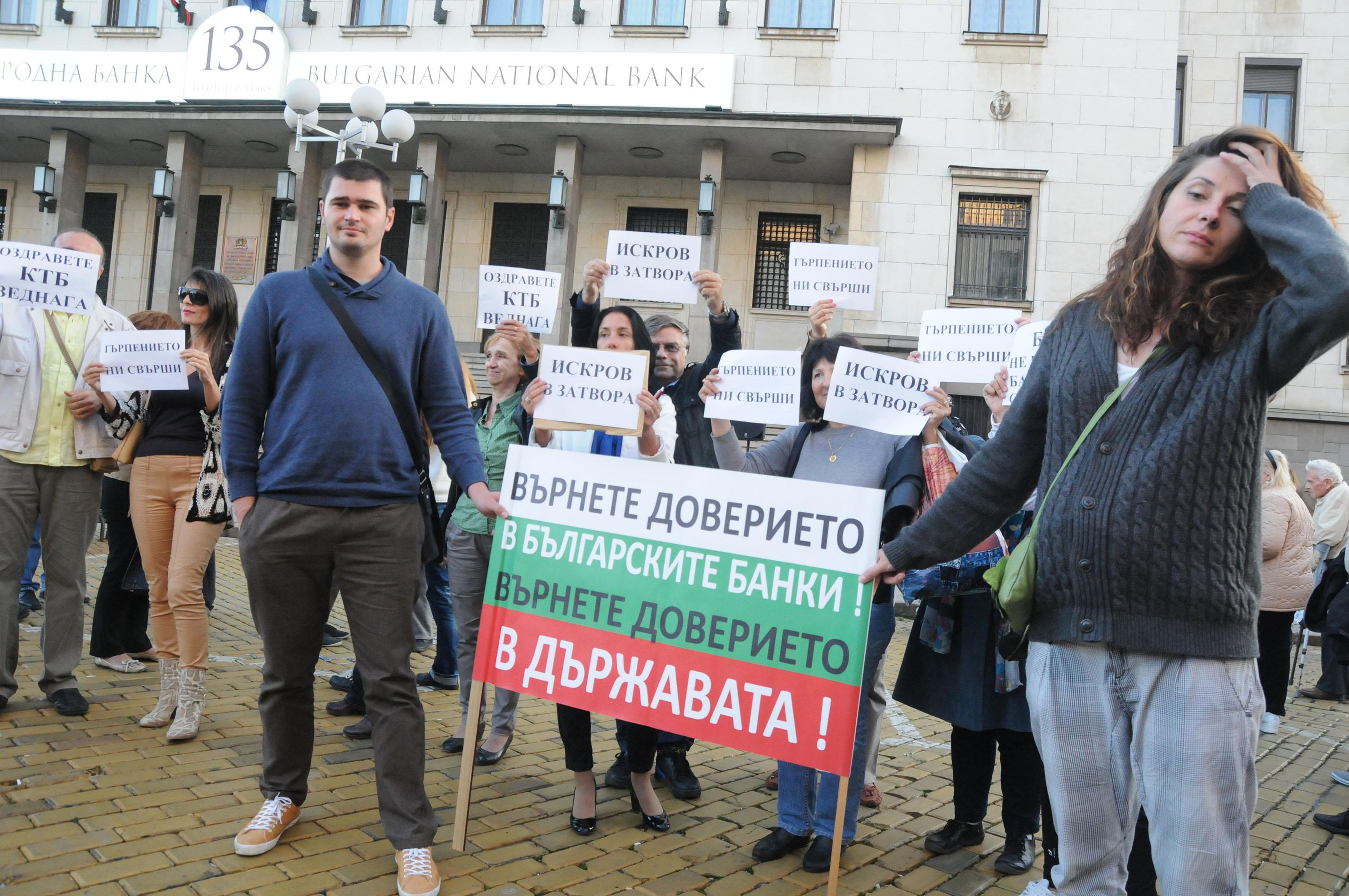 София /КРОСС/ Над 200 човека излязоха на пореден път в центъра на София срещу затварянето на КТБ. Хората отново настояха за незабавно отваряне на банката и за достъп до сметките си. Те са категорични, че ще защитават своите права.