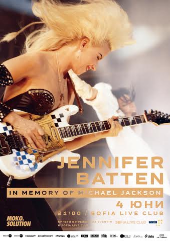 Концертът на Дженифър Батън "In Memory Of Michael Jackson" е на 4 юни (събота) в Sofia Live Club. Начало: 21:00 часа. Билети могат да бъдат закупени в Sofia Live Club и мрежата на Eventim в цялата страна, както и online ТУК. Първите 100 пропуска са на промоционална цена от 40 лв. След тяхното изчерпване билетите ще струват 50 лв.
