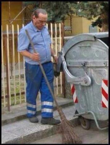 /КРОСС/ Медийният магнат Силвио Берлускони стана уличен метач. В мрежата се появи снимка на италианския политик с метла в ръка. Предполага се, че новата му длъжност е в изпълнение на наложеното му от съда наказание по делото за укриване на данъци - полагане на общественополезен труд .