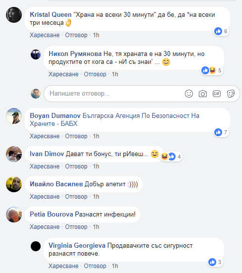 Коментарите под поста също се оказаха доста интересни, един от коментиращите споделя:''Храна на 30 минути'' да бе да ''на всеки три месеца'', други пък споделят,че момичето е трябвало да се обърне към Агенция по Храните или КЗП.