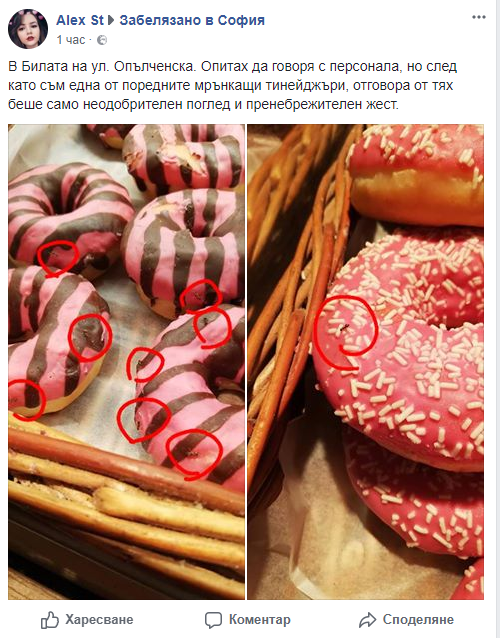 /КРОСС/ За изключително неприятни понички продавани в столичния магазин БИЛЛА на ул.Опълченска съобщи тинейджърка в социалната мрежа Фейсбук.