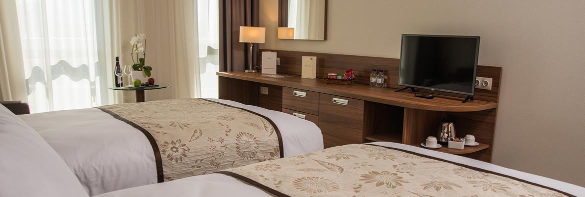 Всяка една от 155-те просторни хотелски стаи, Premier King и Twin, както и Deluxe Queen и Business Suite, са оборудвани с най-новите 32-инчови LG LCD хотелски телевизори, модел LW340C. Хотелът разполага и с денонощна бизнес зона и високотехнологичен конферентен етаж, където за съвършено удобство на гостите са инсталирани 43-инчови LG екрани, модел LW310C.