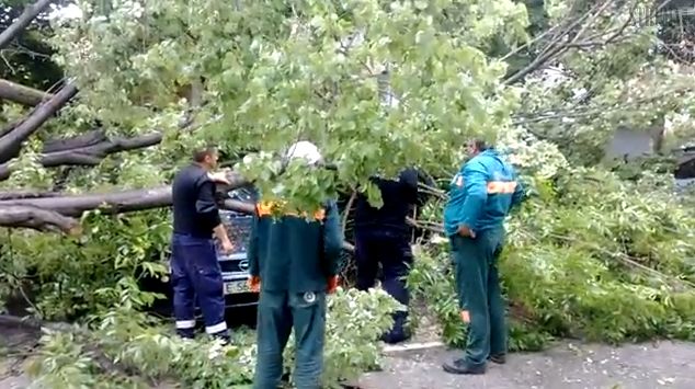На място пристигнаха екипи на пожарната и гражданска защита, които започнаха орязването на около 50-годишната липа и освобождаването на затиснатия под нея автомобил. На колата са счупени стъклата и е изкривен капака на багажника.