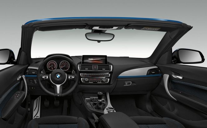 В салона има нови спортни седалки, ниво Aluminum Hexagon и акценти Estoril Blue. Воланът е обвит в кожа, измервателните уреди ревизирани, а степенката за левия крак с лого М, както и лайстните под вратите, пише autobild.bg.