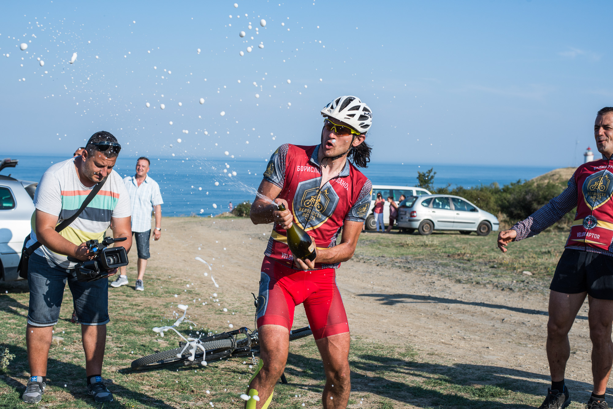 Постави го Борислав Йорданов, който премина трасето с дължина над 600 км, с велосипед. Той потегли в 9:00 ч. на 1-ви август от връх Ком и финишира на нос Емине в 18:01 ч. на 4-ти август.