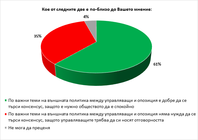 Обществото е доловило и любопитната ситуация на единодушие на Борисов и Нинова и разногласие между Борисов и Цветанов. Например, 80% одобряват това, че Нинова поздрави Борисов за позицията му, а 13% се против това, а останалите се колебаят. А когато избират между позициите на Борисов и Цветанов 81% избират позицията на Борисов срещу 5% - тази на Цветанов. 12% избират „нито един от двамата“, а останалите се колебаят.