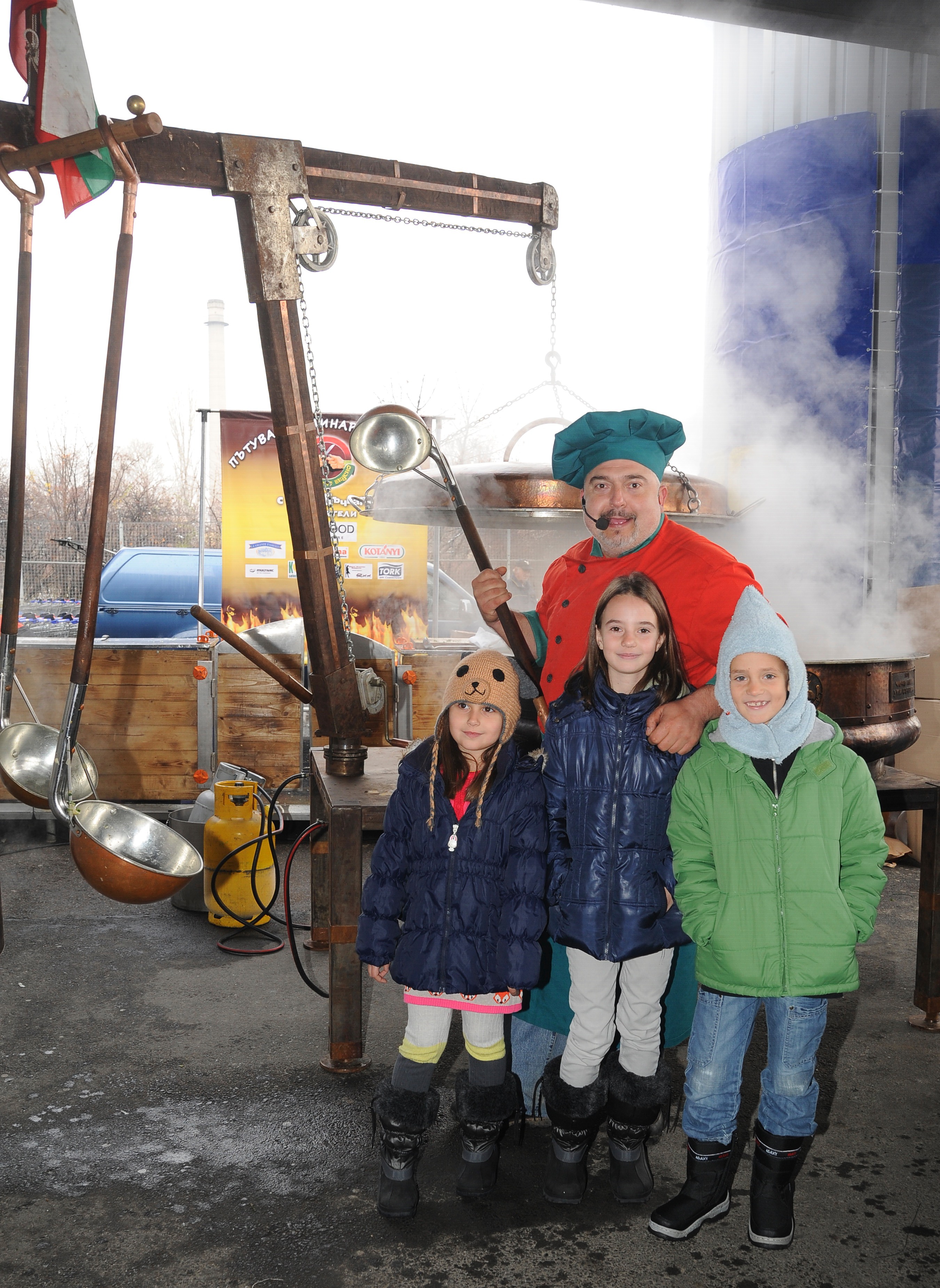 София /КРОСС/ Дни преди Никулден, с много усмивки бяха сготвени 100 африкаснки сома от Ути Бъчваров на паркинга пред магазин „Метро" 1. Малки и големи се веселиха, докато майсторът кулинар забъркваше 700 литровата супа от екзотичната риба в най-големия казан в България.