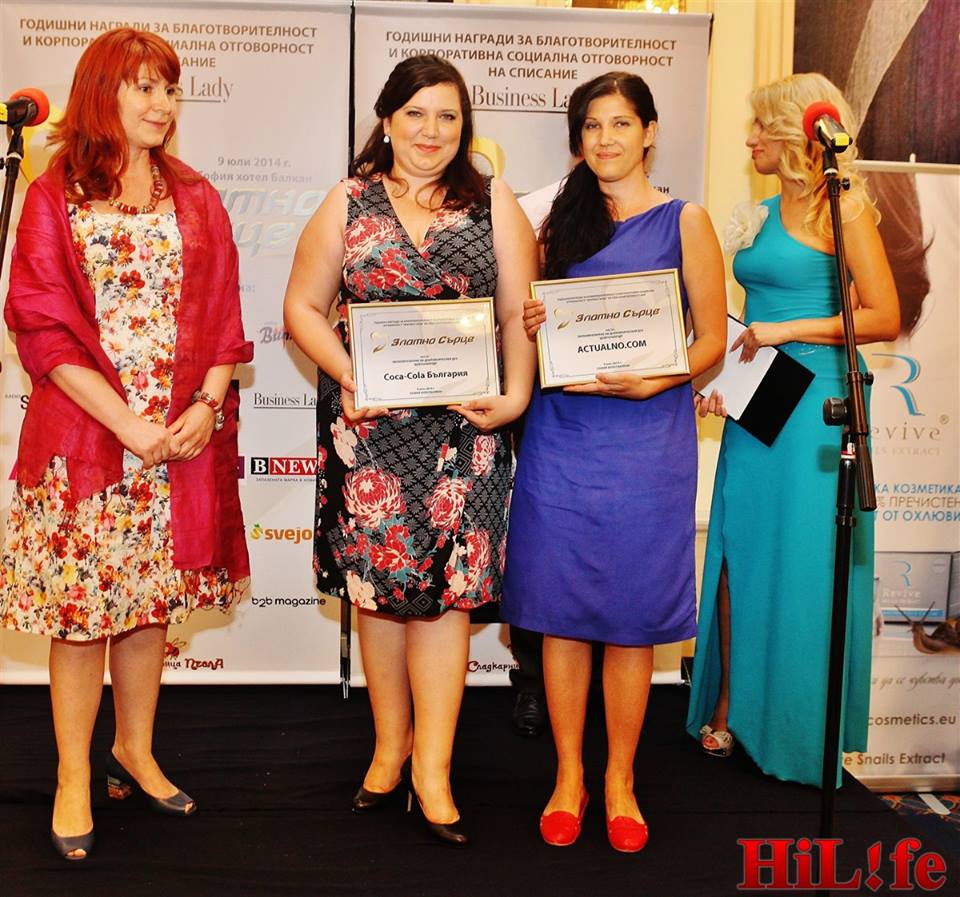 Партьори на първото издание „Златно сърце" на сп. BUSINESS LADY бяха Асоциацията на индустриалния капитал в България, Асоциацията на бизнес експертите в България и сладкарници „Пчела".