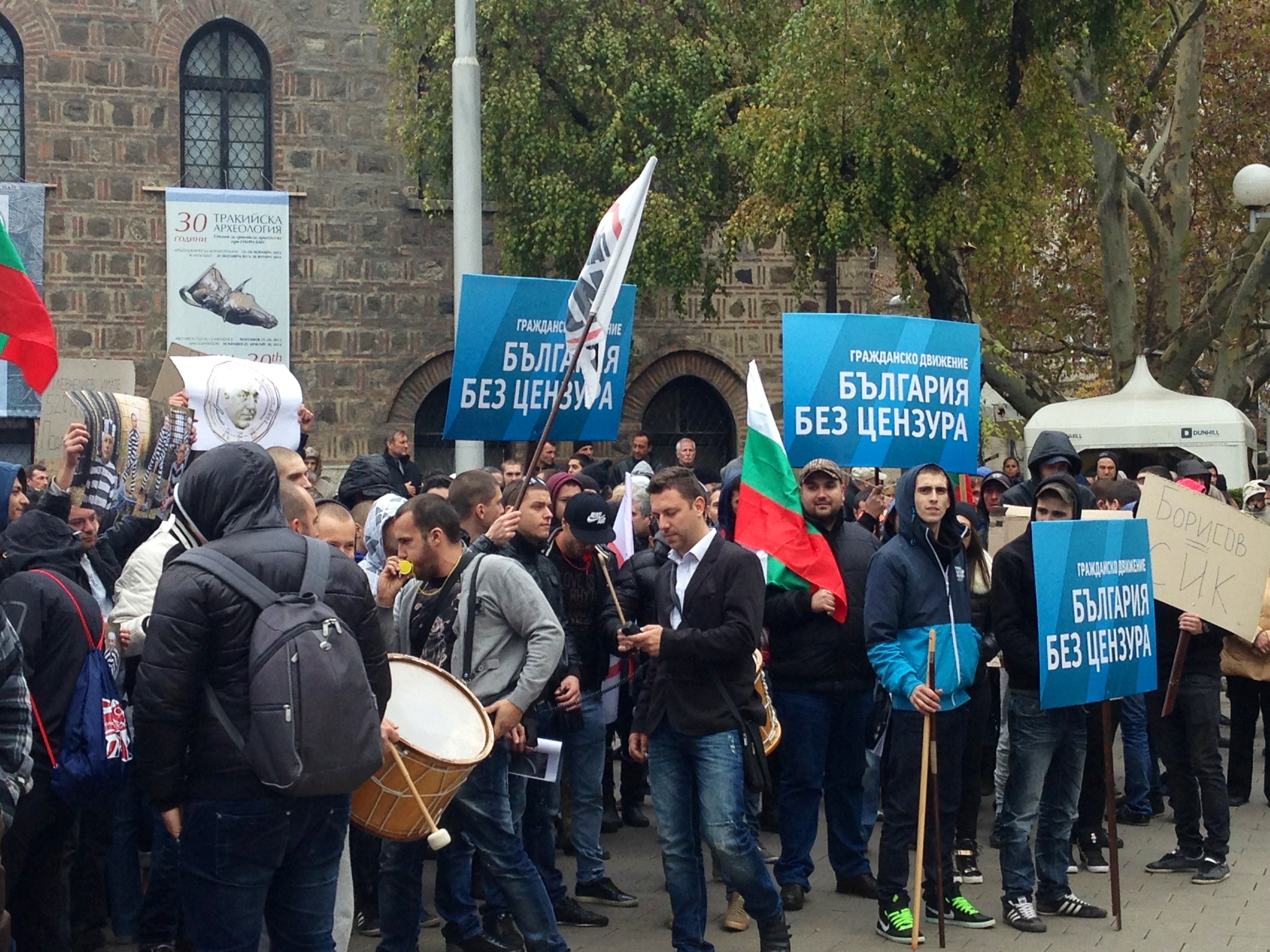 София /КРОСС/ Движението на Николай Бареков "България без цензура" събра свои последователи пред президентството преди началото на КСНС.