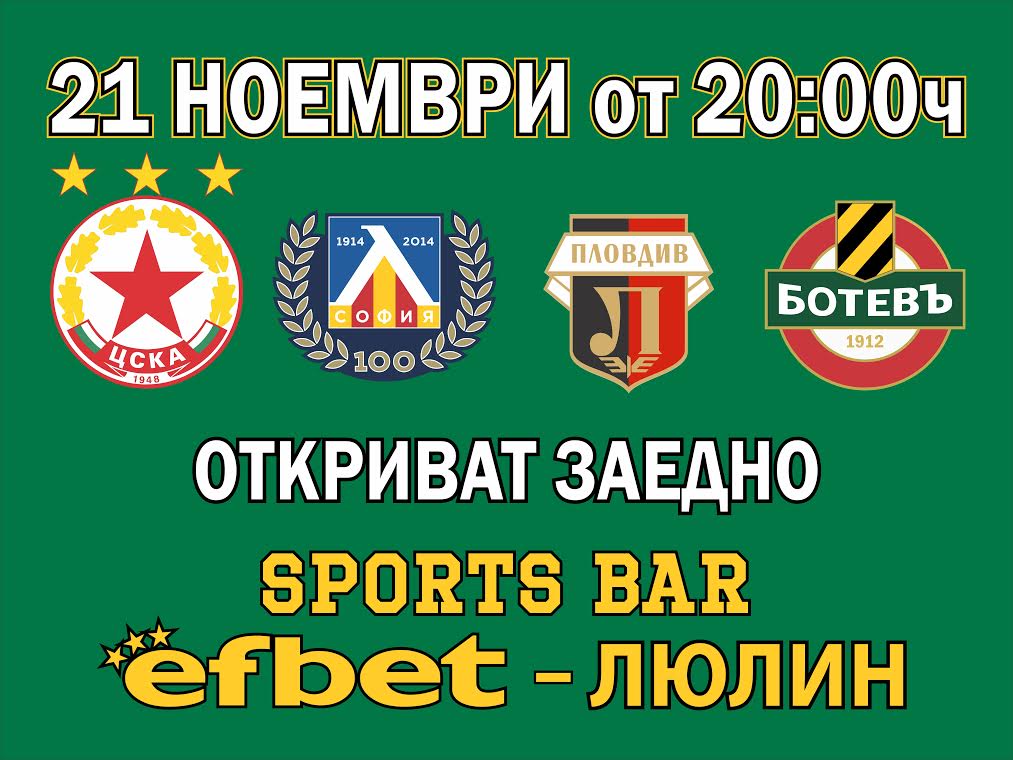 Официалното откриването на спортния бар е на 21 ноември (петък) от 20:00 ч. На събитието ще бъде редставена новата фланелка на Левски с наличието на новия рекламодател - Ефбет, върху нея. Гости на представянето ще бъдат ръководствата на спротни клубове и футболисти, а водещ - Ники Кънчев, който е организирал игри с въпроси насочени към всички софийски и пловдивски футболни грандове, от които ще присъстват минимум по 3-4 представители.