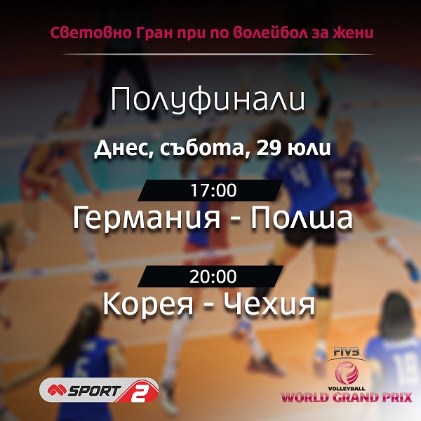 Събота е денят за полуфиналите и на дамското волейболно Grand Prix 2017. Четирите най-добри отбора от Група 2 ще определят този уикенд кой ще бъде шампион, а всички двубои ще бъдат излъчвани директно по Mtel Sport 2. Шампионът в надпреварата ще спечели промоция за Група 1, а началото е в събота с полуфиналните сблъсъци Южна Корея - Германия от 17:00 часа и Чехия - Полша от 20:00 часа. Отборите победители ще се изправят в големия финал в неделя от 19:00 часа, докато загубилите ще играят за утешителното трето място от 16:00 часа.