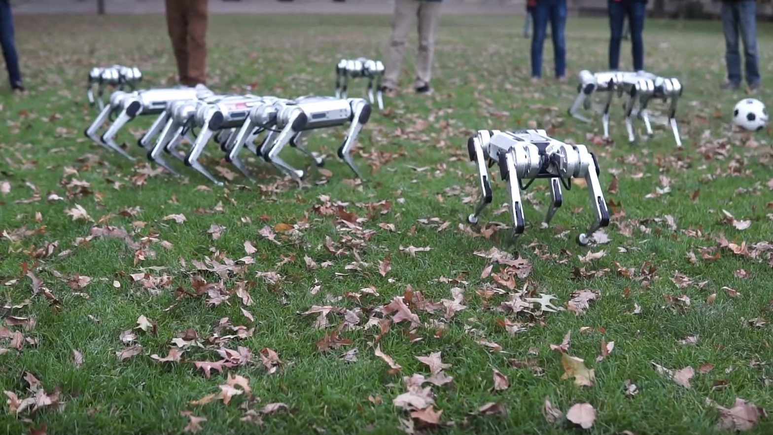 Става въпрос за малки модели, които както можете да видите във видеото приличат повече на кучета, но от университета ги наричат "гепардчета". Те са част от проект на катедрата по биометрика и демонстрират своите възможности на поляната пред учебното заведение.