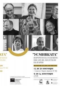 Фотоизложбата „Усмивката" ще може да се види от 13 до 30 ноември в "+ това " на ул. "Марин Дринов" № 30, София, както и в НДК по време на Софийския международен литературен фестивал. Тя представя портретите на 25 писатели от 19 страни, посетили през последната година България. Изложбата е част от второто издание на Софийския международен литературен фестивал.