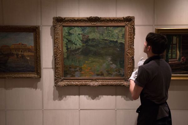 /КРОСС/ Sotheby`s продаде на търг картина на Уинстън Чърчил. За платното "Езерото със златни рибки в Чартуел" неизвестен купувач предложи 1.8 милиона паунда. Това е най-високата сума, предлагана за произведение на британския политик.