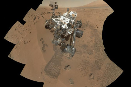 /КРОСС/ Марсоходът Curiosity празнува годишнина - на днешната дата се навършва точно година, откакто започна мисията му на Червената планета. По този повод машината си направи селфи на фона на пустинния пейзаж на планетата.