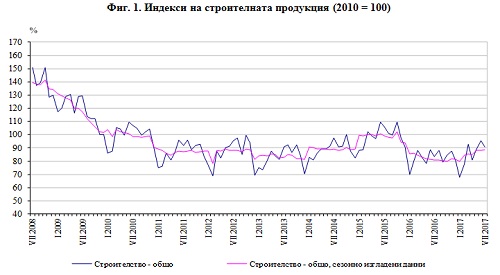 През юли 2017 г. индексът на произведената строителна продукция, изчислен от сезонно изгладени данни, е над равнището от предходния месец, като продукцията от сградното строителство се увеличава с 1.5%, докато от гражданското/инженерното строителство намалява с 0.7% .