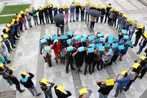 В град Стара Загора 700 деца изписаха призива „Усмихни се" към децата от всички възрасти. А в област Сливен в събитието се включиха всички училища.