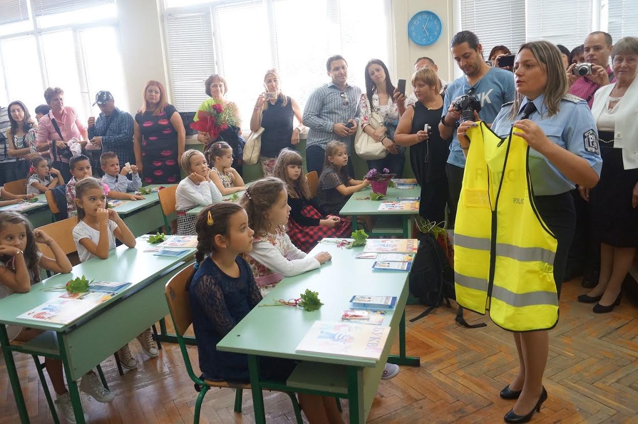 За четвърта поредна година водещите Драгомир Драганов, Анна Ангелова, Филипа Иванова и Иван Петров, заедно с представители на «Пътна полиция», преведоха първокласниците по обновената пешеходна пътека пред училището.