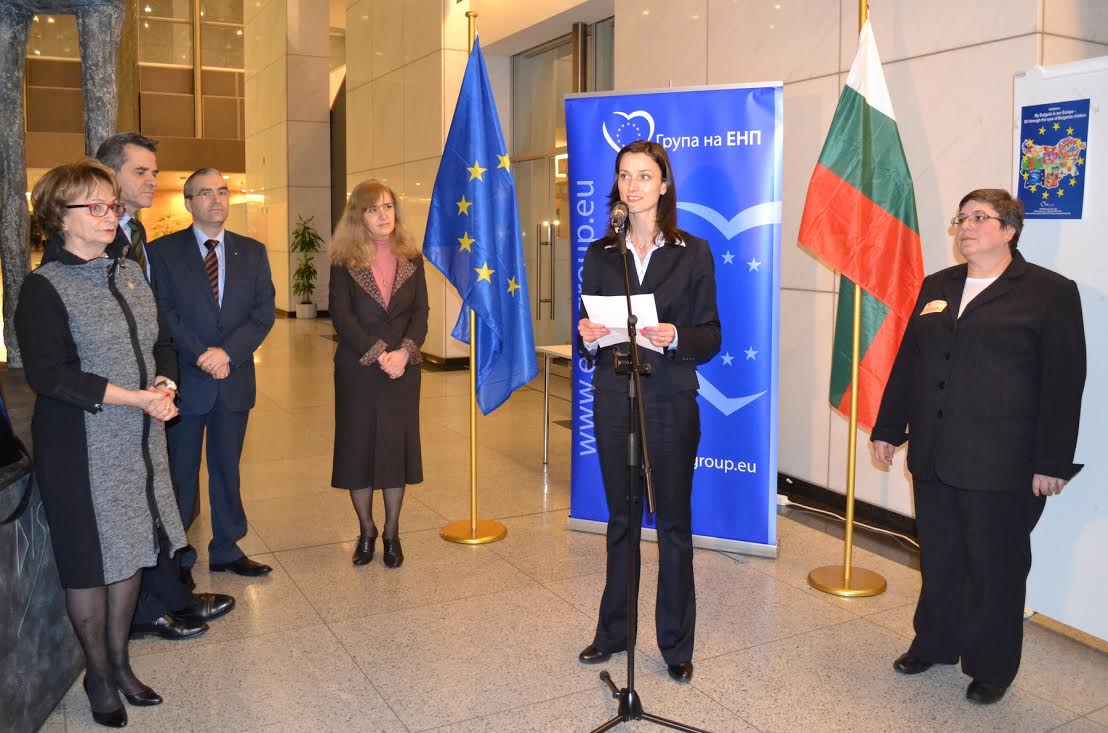 /КРОСС/ Десетки посетители привлече откриването в Европейския парламент на изложбата на компютърни рисунки „Моята България в нашата Европа - ЕС през погледа на българските деца", представяща творбите на талантите от компютърна школа „Вале" в Хасково. Експозицията беше организирана от евродепутата Мария Габриел като естествено продължение на установените приятелство и сътрудничество с школата преди две години. Рисунките на децата, изработени с техниката на дигиталната графика и живопис, майсторски пресъздават български исторически паметници, национални традиции и обичаи, символи на европейски градове, мечтите и представата на българските деца за обединена Европа.