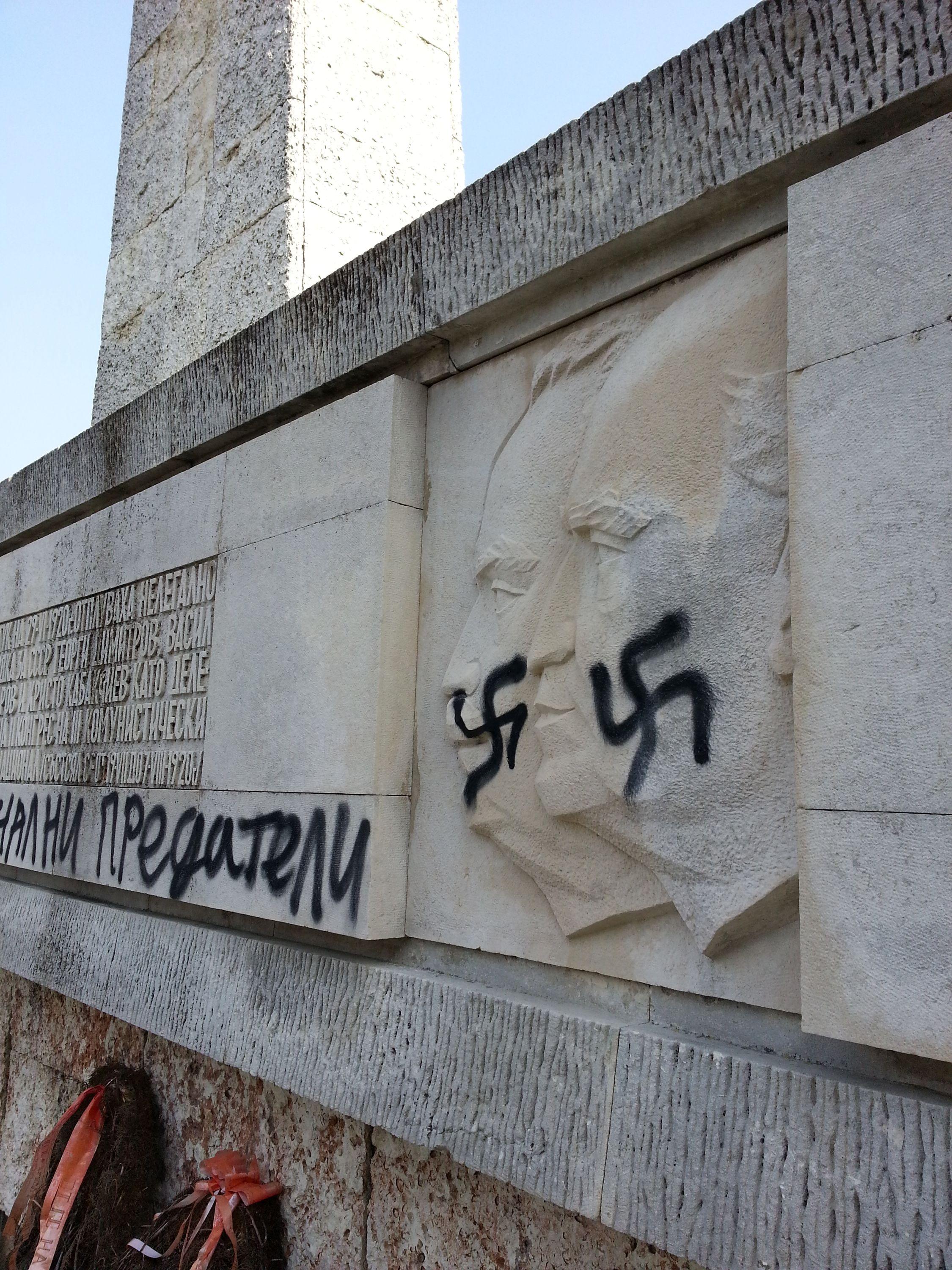 Варна /КРОСС/ Оскверниха паметника на Георги Димитров във Варна. Така наречената "лодка" на Георги Димитров и Васил Коларов във варненския квартал "Аспарухово" е издраскан със свастики и надпис "национални предатели".