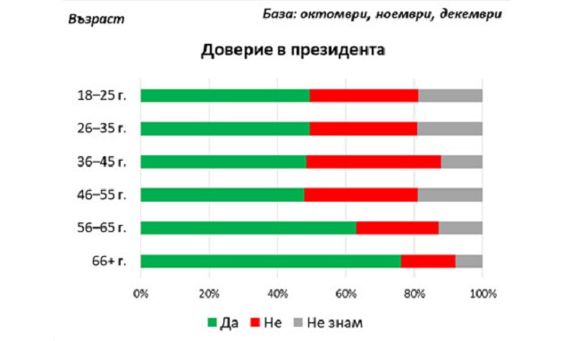 Ниските нива на доверие в президентската институция, характерни за мандата на Росен Плевнелиев (2012 - 2017 г.), бяха заменени през 2017 г. от чувствително по-позитивни обществени нагласи. След избора на нов президент през есента на 2016 г. доверието започна да се повишава - както обичайно се случва при смени в тази институция, а и при смени в институциите въобще.