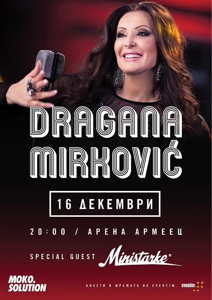 BEST OF концертът на Драгана Миркович е на 16 декември в зала „Арена Армеец". Начало 20:00 часа. Билети търсете в мрежата на Eventim. Цена на билетите: от 20 до 50 лева.
