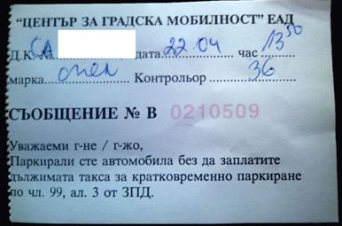 София /КРОСС/ Граждани алармират за нова офанзива на търговското дружество „Център за градска мобилност" ЕАД. Инспекторите с жилетки поставяли съобщения върху автомобили без винетки или платена такса за престой в зоните, паркирани пред частни гаражи, съобщават от Софийски обществен съвет.