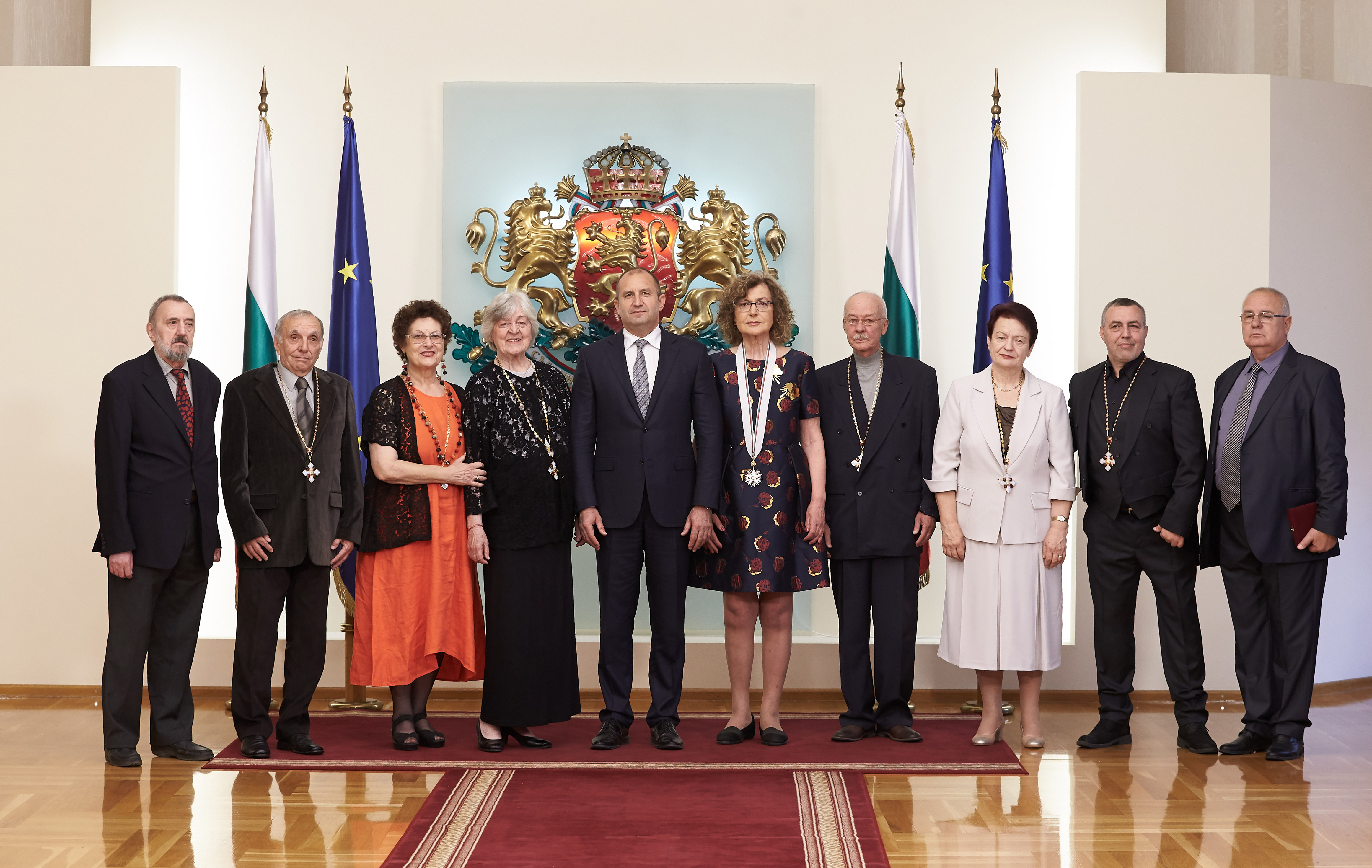 „За мен е чест да връча висши държавни отличия на толкова големи творци, ярки личности и достойни българи, посветили себе си на духовния напредък, вписали се с талант, всеотдайност и много труд сред съзвездието от ярки имена, с които България присъства пълноценно на съвременната европейска и световна сцена. Мога да кажа, че богатите биографии на отличените ясно показват, че зад тях изпъкват силата на изкуството, с която сила то пленява ум и въображение“, заяви държавният глава в словото си на церемонията.