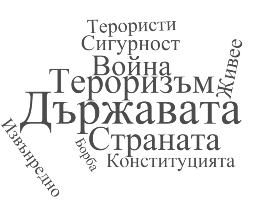 Euronews направи т. нар. облак с най-често използваните думи. Клуб Z преведе тези думи на български език. Извадени са специфични думи като ИД, Афганистан, Сирия, талибани и т.н. Следват две графики с най-често използваните думи от Буш и Оланд, а вие трябва да познаете коя на кого е. Отговорът е в края на текста.