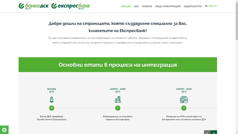 Клиентите на Експресбанк вече разполагат с иновативна платформа с информация за обединението с Банка ДСК
