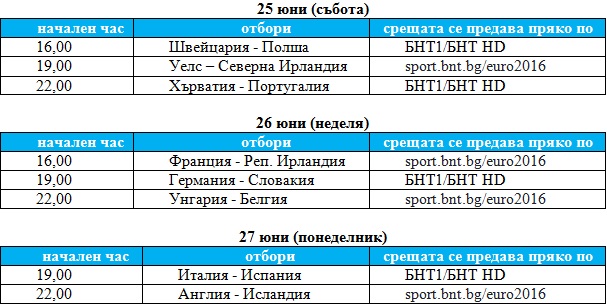 Осминафиналните срещи от UEFA EURO 2016 в програмите на БНТ