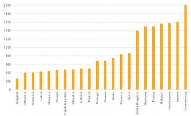 Статистическите данни показват, че най-високите минимални заплати надвишават почти 8 пъти тези в страни като България.