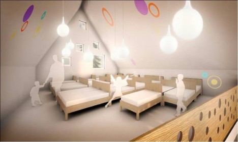 В три от двуетажните корпуси ще са разположени детските групи, а в четвъртия е предвидено място за административната част, физкултурния салон и музикалната зала.