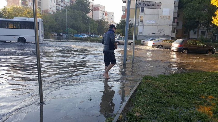 /КРОСС/ Голяма авария превърна в езеро улици в ж.к. „Тракия" в Пловдив, съобщи bTV.
