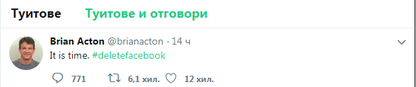 /КРОСС/ Създателят на "WhatsApp" Брайън Ектън призова всички потребители на Facebook да изтрият профилите си в социалната мрежа.