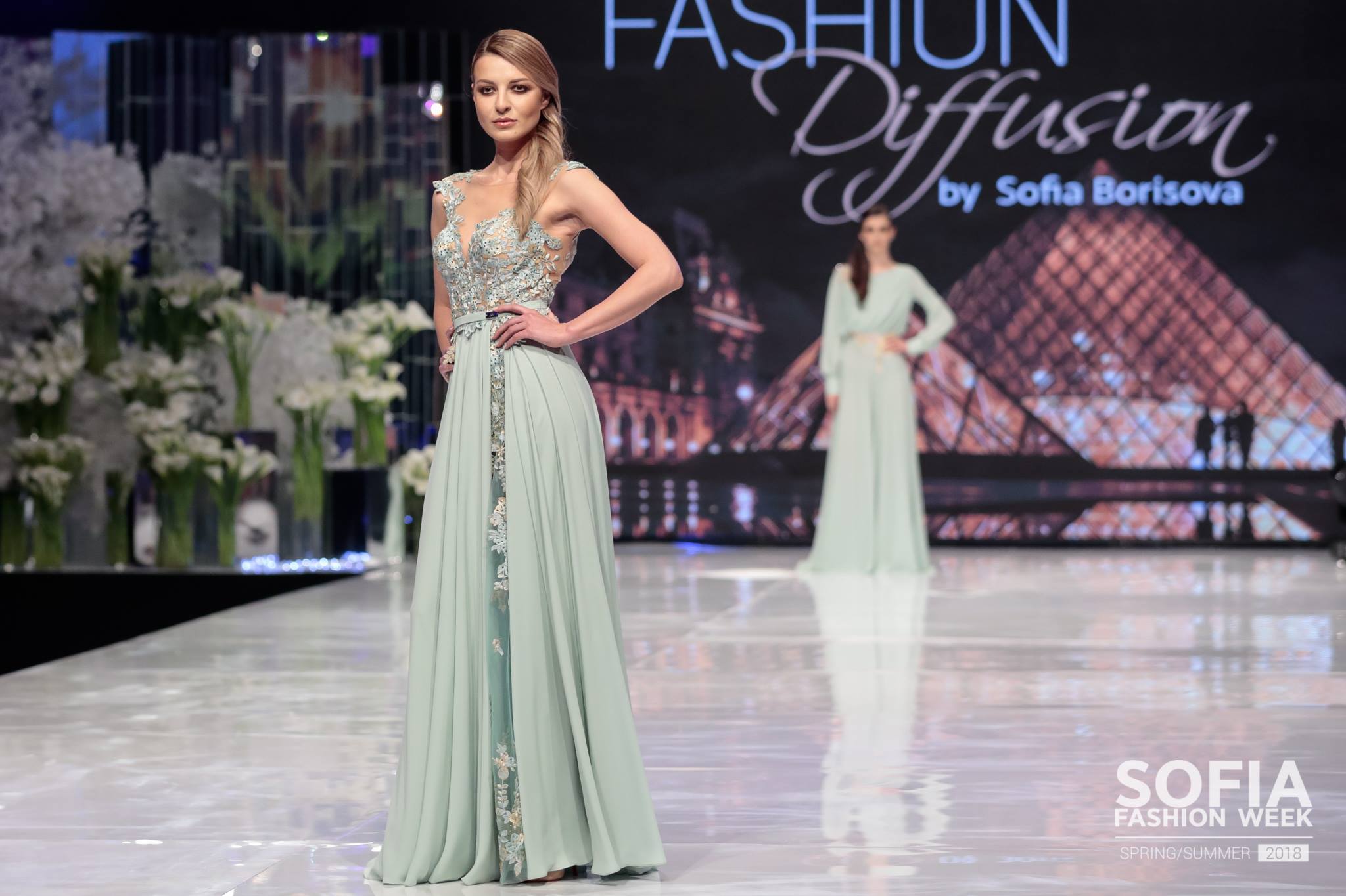 Първата дама на Висшата мода в България- София Борисова отново показа впечатляваща и завладяваща модна линия. Най-новата и колекция "Fashion diffusion" идва директно от модната столица Париж,където бе представена пред 1200 човека в рамките на Paris fashion week.Подиумът на Sofia Fashion Week SS 2018 се превърна в пролетна ферия от нежни и красиви рокли. В палитрата от цветове дизайнерката беше заложила на бледо розово и зелено,жълто и класическо черно. Къси и дълги рокли в комбинация с тюл,коприна и нежна дантела заблестяха на сцената на модното събитие.